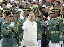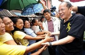 | president of philippine - Benigno AQUINO III-with public shaking hand |